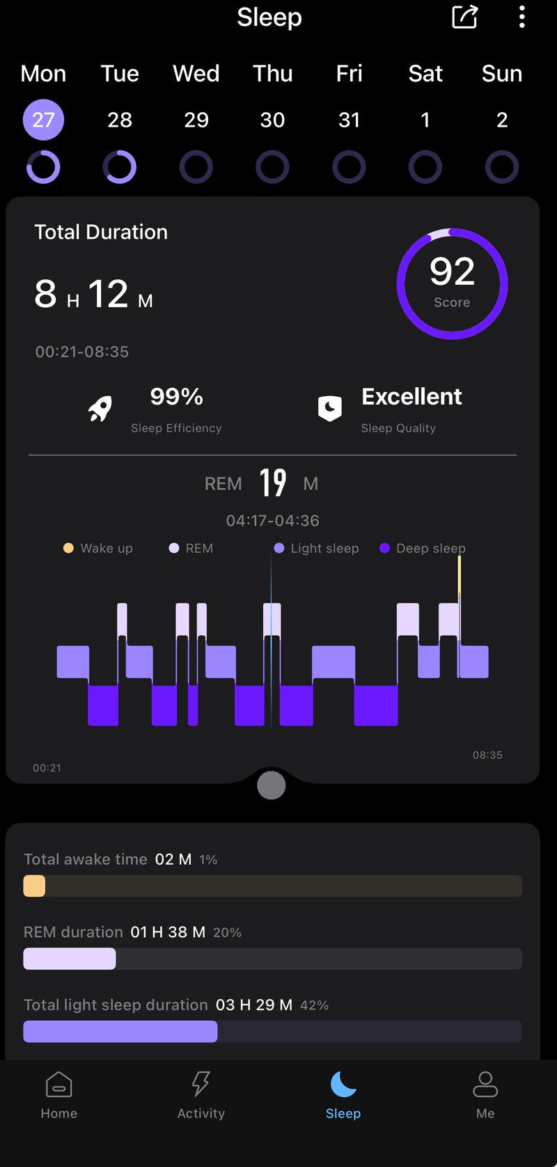 Monitor your sleep patterns and improve your rest with advanced REM sleep tracking technology.